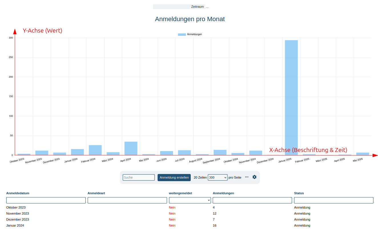 Beispiel am Report "Anmeldungen pro Monat"